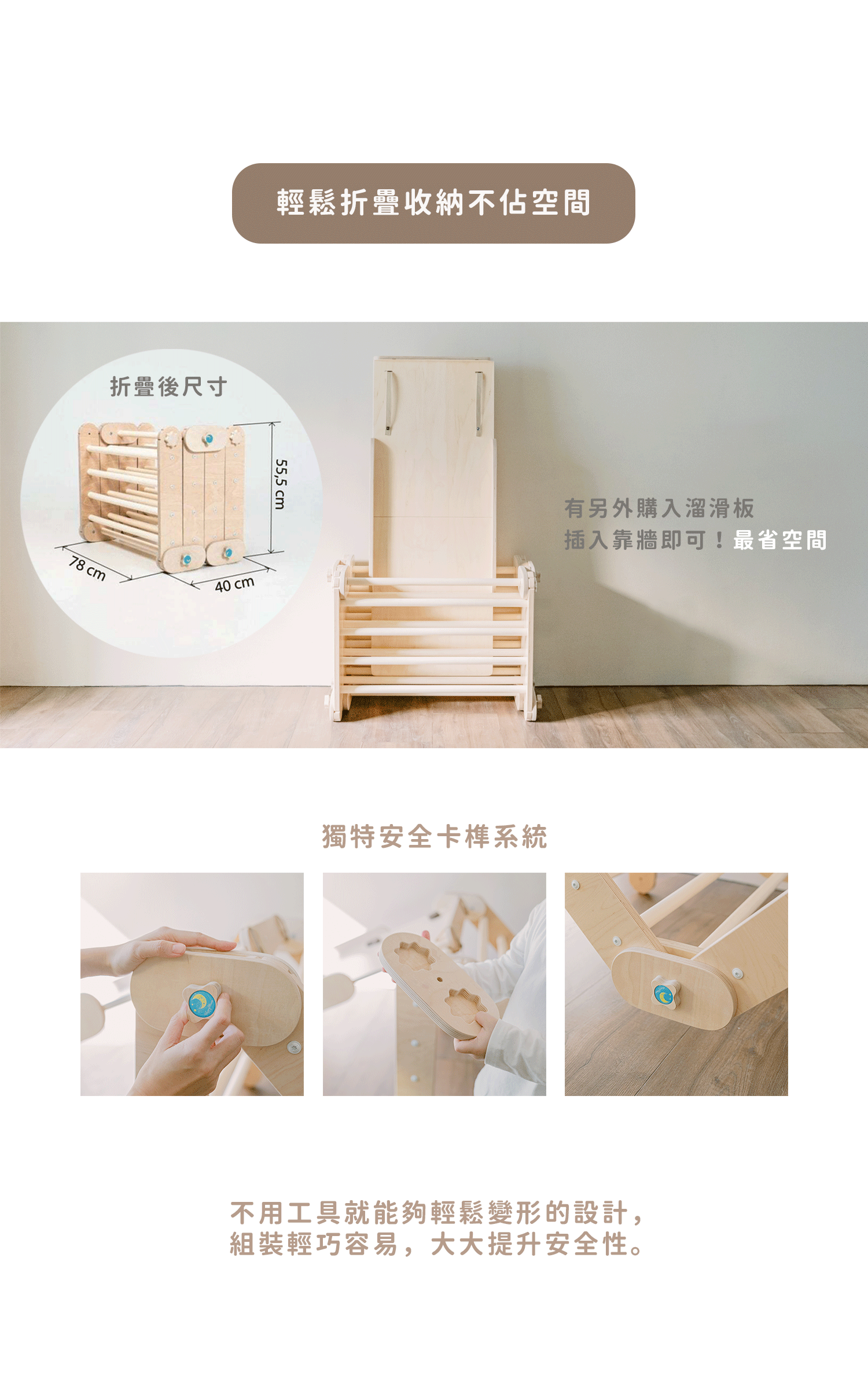 ● 市面唯一可變形攀爬架,可變換超過 20 種不同組合