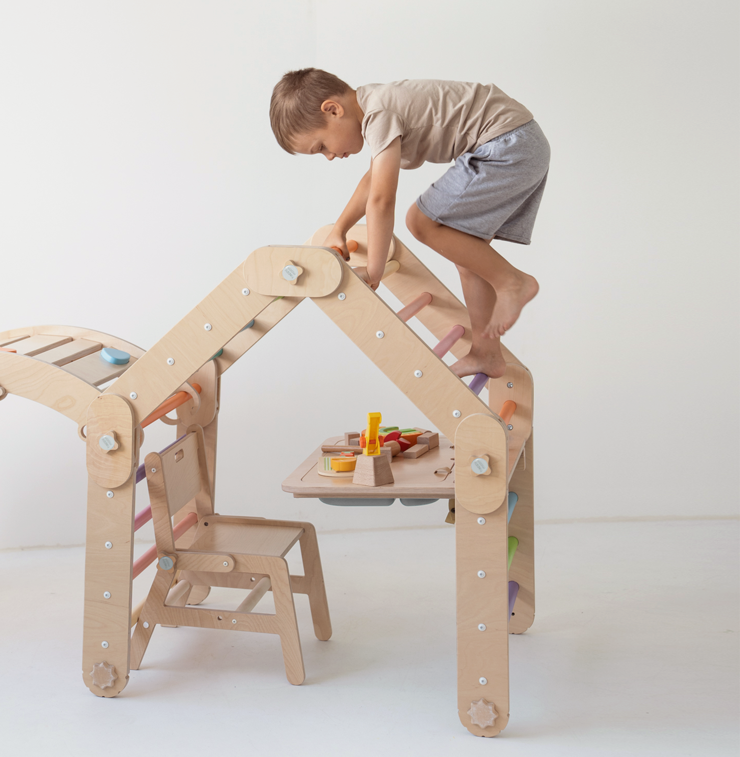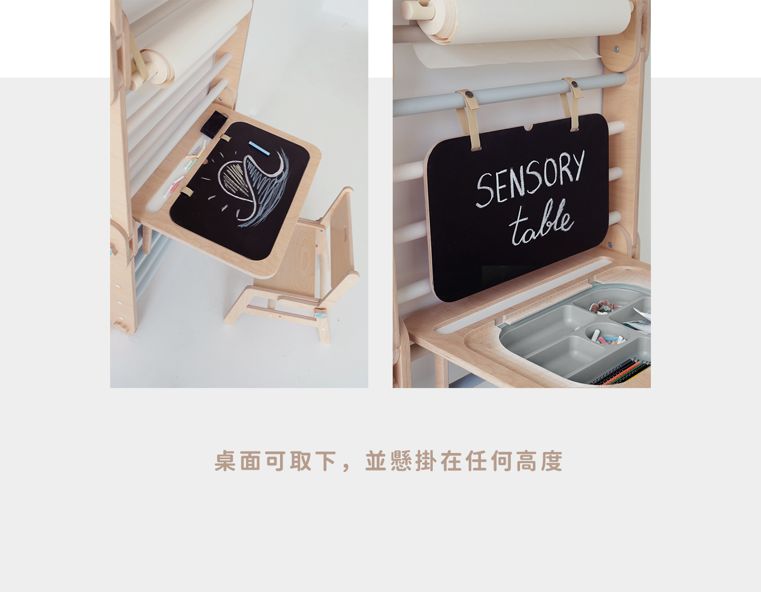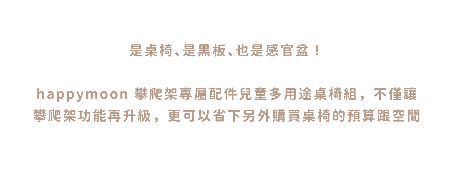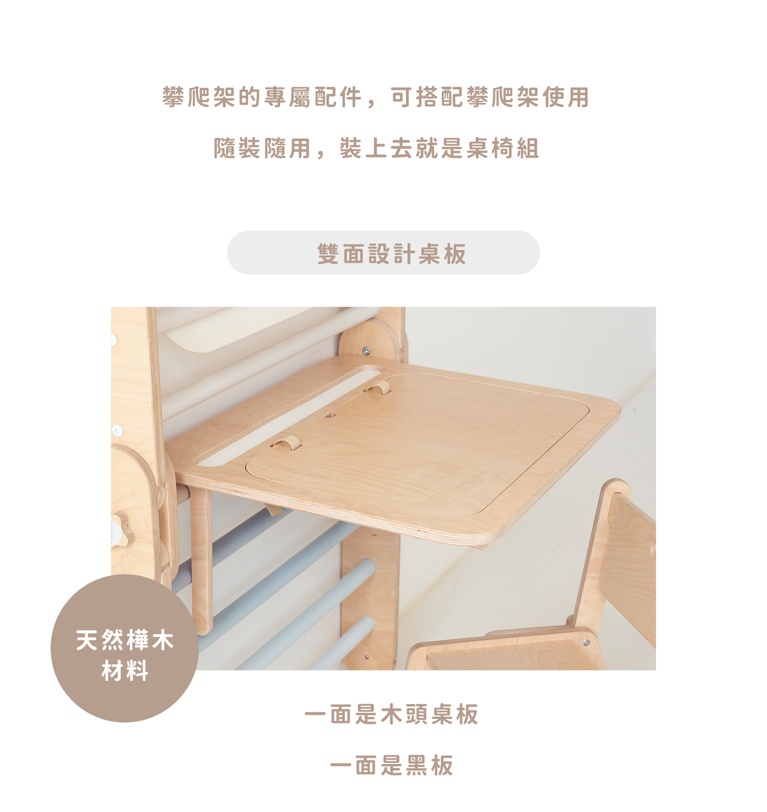 happymoon 攀爬架專屬配件兒童多用途桌椅組,不僅讓攀爬架功能再升級,更可以省下另外購買桌椅的預算跟空間。