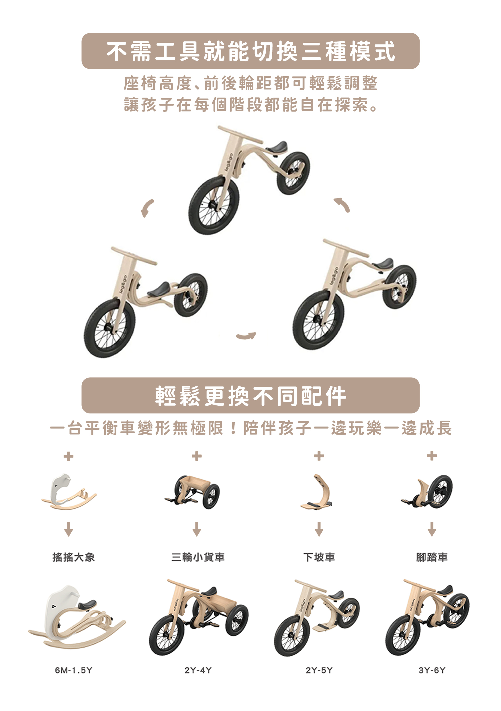 超級實用的一車多用功能,使孩童年紀可以從10個月用到6歲