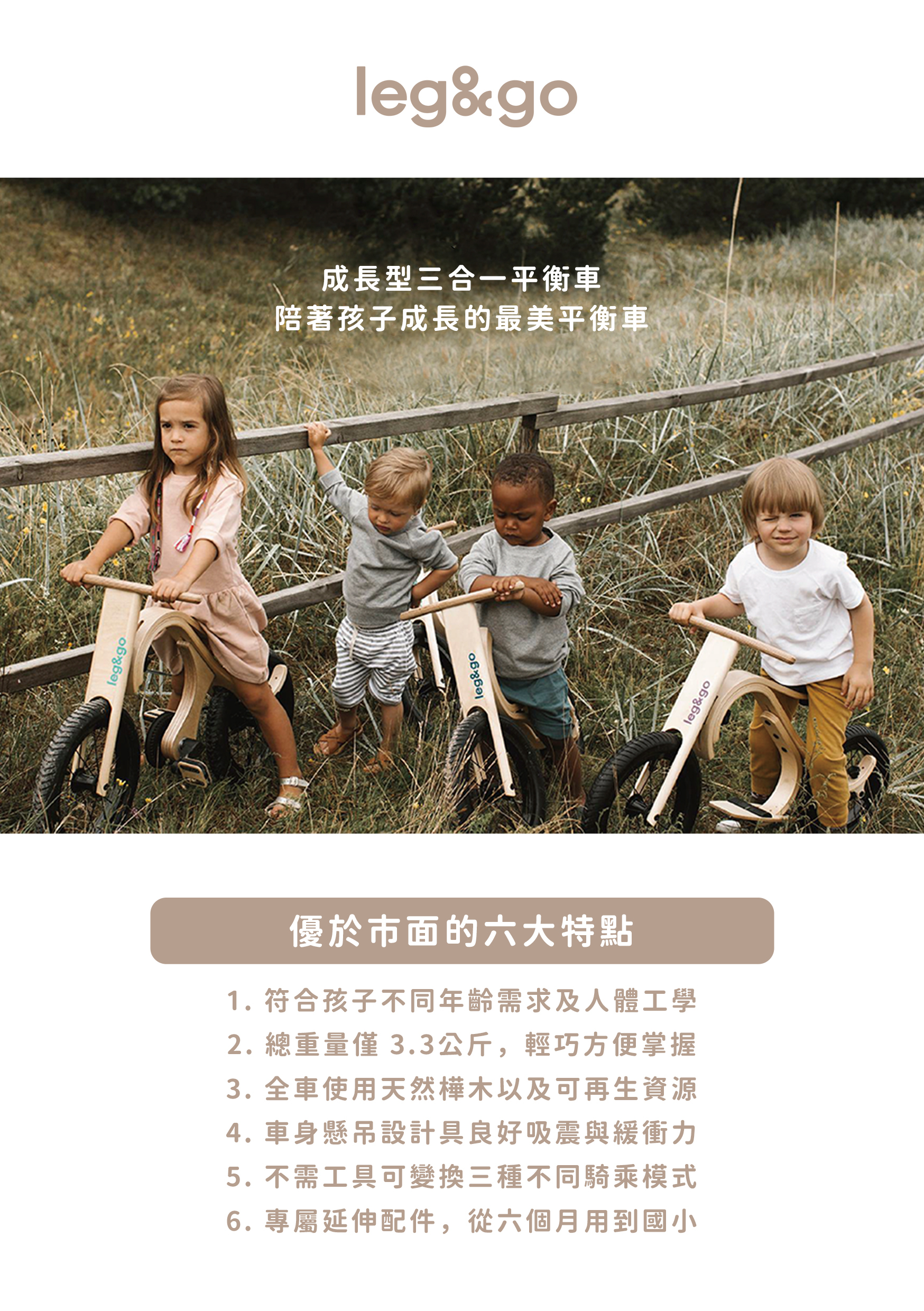 能將leg&go平衡車轉為腳踏車的升級套件,適合三至六歲孩童使用,時尚、有型又保護地球的美型腳踏車。
